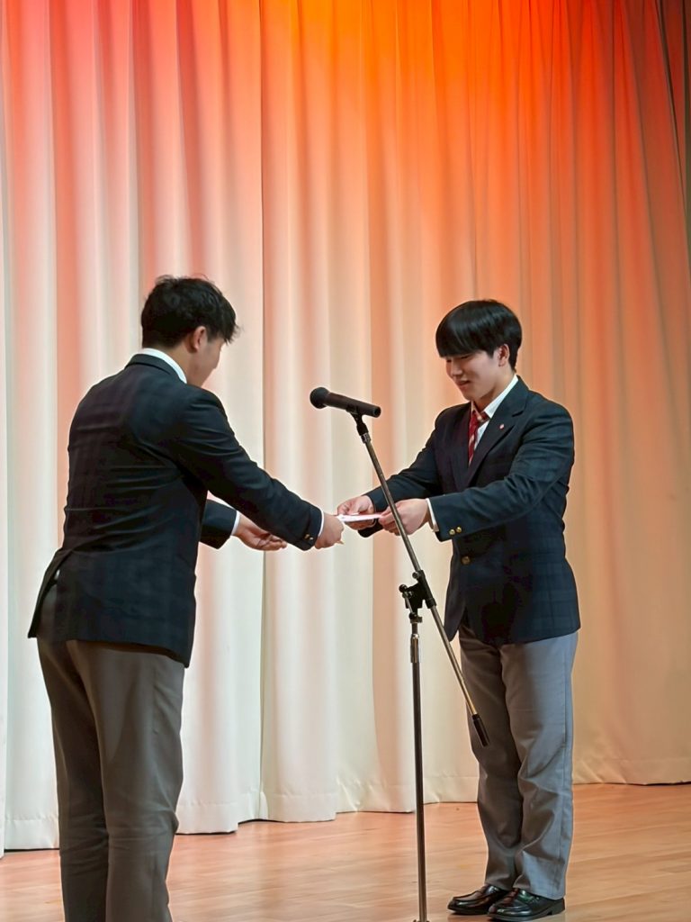 卒業式にて、優秀賞を受賞。